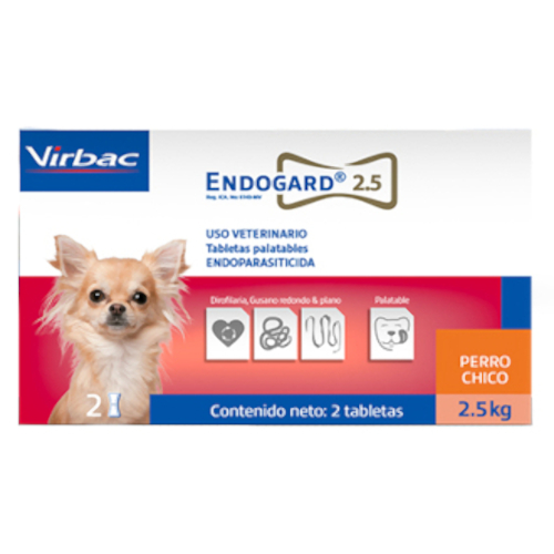 Tabletas antiparasitarias de amplio espectro para perros de 2.5 kg. Su fórmula cuádruple elimina parásitos intestinales y tisulares, ofreciendo protección completa y palatable contra infestaciones mixtas y enfermedades vectoriales.