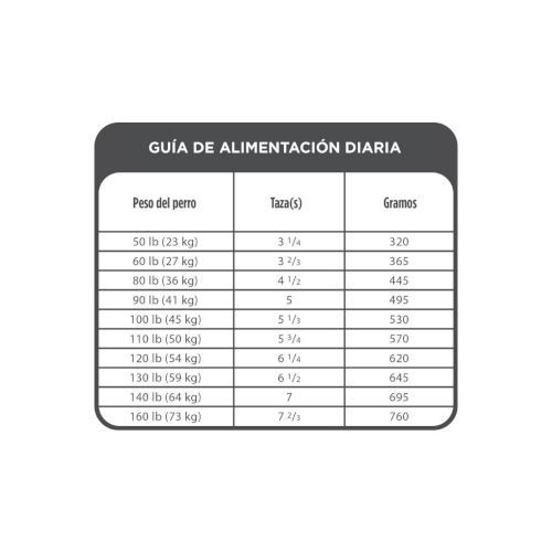 Alimento para perros adultos de razas grandes. Contiene glucosamina y condroitina. Enriquecido con Omega 3 y 6. Vitamina C y E como antioxidantes naturales. Incluye L-carnitina. Sin colorantes ni conservantes artificiales.